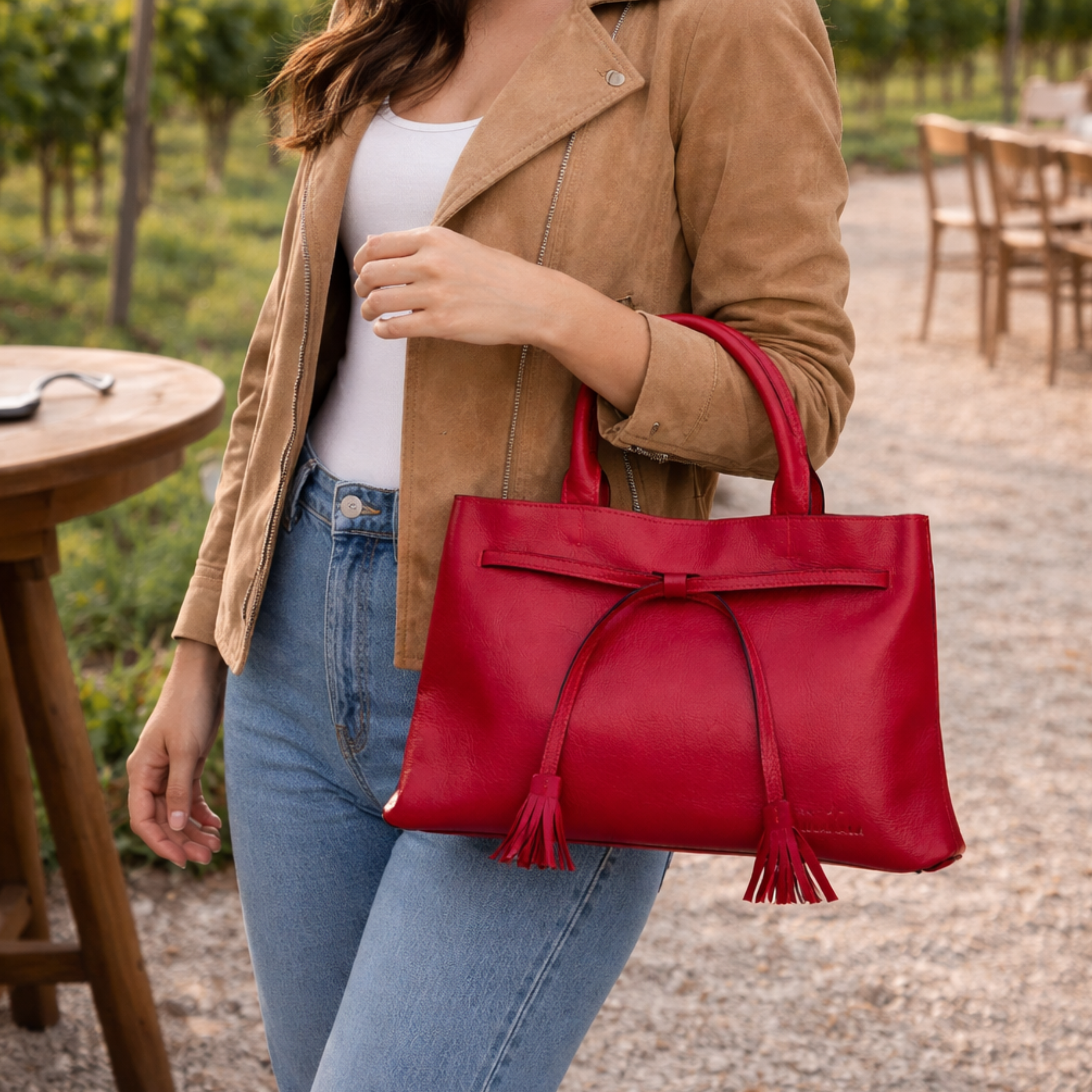 Esta bolsa es la perfecta entre una shoulder bag (o bolsa al hombro), y una bolsa crossbody. Te da la comodidad para llevarla cuando quieras a donde quieras por su asa larga ajustable y desmontable, y el espacio perfecto para llevar lo necesario y un poco más. Cuenta con broche de imán para cerrarse que es reforzado con un cintillo que no sólo le da vista por sus motas a las orillas de éste, sino que te permite sentirte con más seguridad y ajustarlo según prefieras. Al interior cuenta con una bolsa pequeña en la que podrás llevar aquellos artículos que no quieres perder de vista. Su comodidad, estilo y flexibilidad harán de esta bolsa piel gruesa rojo tu mejor amiga.